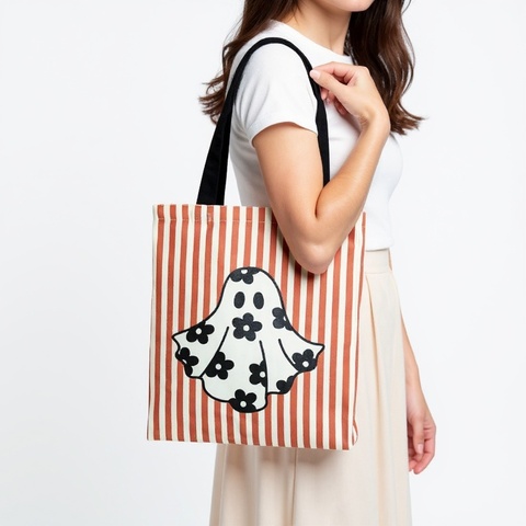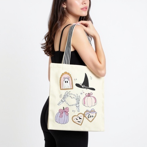 热卖定制卡通图案帆布手提包单肩棉布包带字母图案高级购物袋
